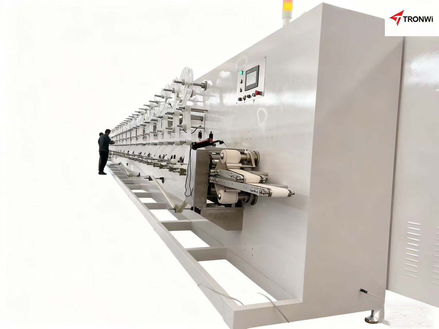 5. Raw material rolls: 25 raw material suspension mechanisms, which use mechanical floating brakes to ensure tension control of large and small rolls of materials.